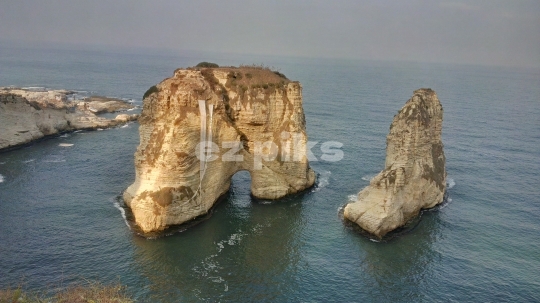 Beirut, Lebanon: A view of Raouche rocks ( pigeon rocks).