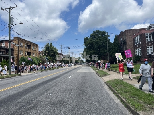 Norfolk, VA, USA - 06-14-2025 Demonstrators taking part in an anti-President Donald Trump no king demonstration in downtown Norfolk city in southeast Virginia, USA.