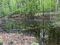 Sunlight filtering through the trees onto a tranquil stream in York town, VA, USA.