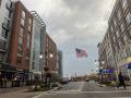 Oxon Hill, MD, USA - 08/11/2023: Strong wind whips a massive American flag.