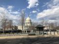 Washington DC, USA - 02-21-2018 The United States Capitol Building viewed from a street-level perspective under a partly cloudy sky.