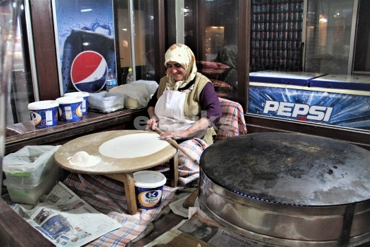 Turkey Istanbul - 04/10/2020 : A female baker at work in restaurant in Sultan Ahmed neighbourhood in downtown Istanbul, Turkey.