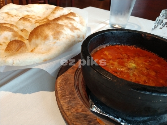 Traditional middles eastern meal; clay oven bread and crushed broad beans.