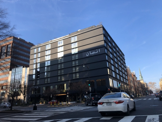 Washington DC, USA 02202019 An Arabic word displayed on a building faade to mark Arabic Language Day.