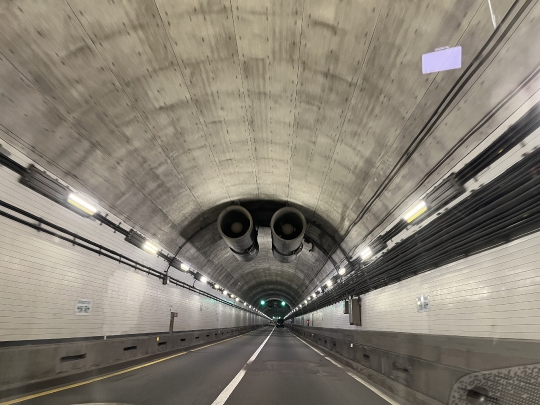 Norfolk, VA, USA - 12-29-2025 Ceilingmounted ventilation fans in Norfolks downtown underwater tunnel.