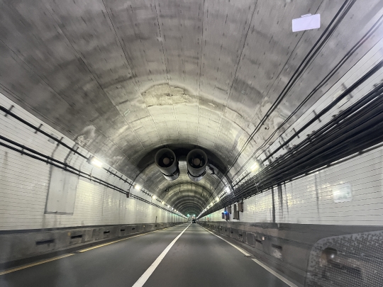 Norfolk, VA, USA - 12-29-2025 Ceilingmounted ventilation fans in Norfolks downtown underwater tunnel.