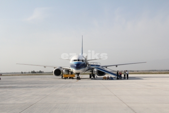 Altay, Xinjiang, China 09-20-2014 A China Southern Airlines Boeing 737 on tarmac at Altay airport in Xinjiang province in northern China.