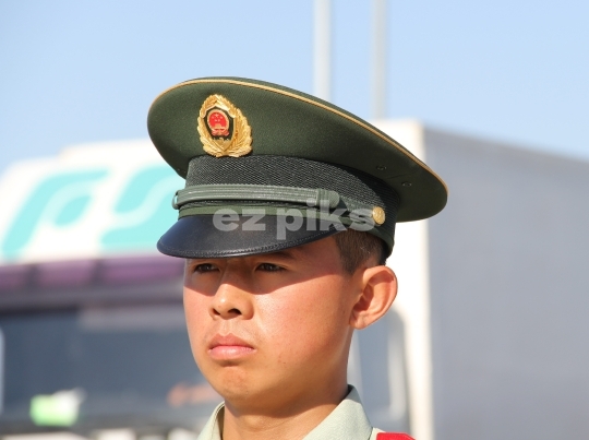 Qapqal, Xinjiang, China - 09-18-2011 A Chinese border guard in Qapqal autonomous region close to China-Kazakhstan border.
