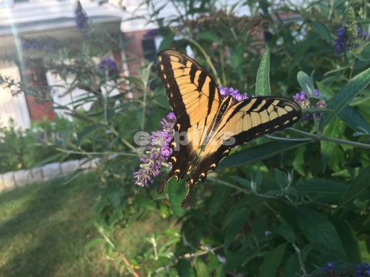 Eastern tiger swallowtail butterfly rests on a flower.