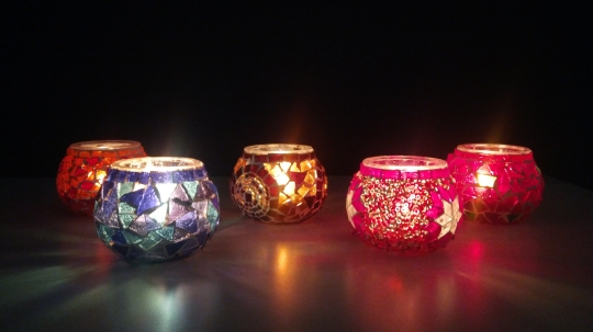 Candles lit inside Turkish hand-made candle holders.