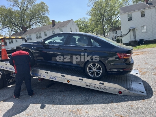 Newport News, VA,USA - 04-08-2025: A man loading a car on a breakdown towing truck.