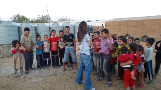 Burelias, Lebanon - 08-01-2014 Syrian children excited about journalists visiting their refugee camps in Burelias, Lebanon.