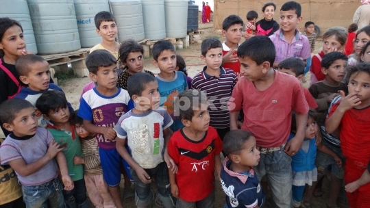 Burelias, Lebanon - 08-01-2014 Syrian children excited about journalists visiting their refugee camps in Burelias, Lebanon.