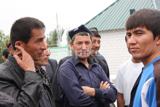 Xinjiang, China - 09/17/2011: Chinese Muslim Uighur men looking at the camera.