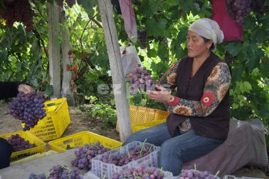 Xinjiang, China - 09/20/2011: A Chinese woman is sorting out red grapes.