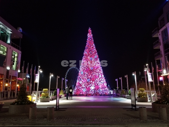 Gigantic Christmas tree displayed in Reston town center, VA, USA.