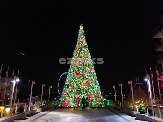 Gigantic Christmas tree displayed in Reston town center, VA, USA.