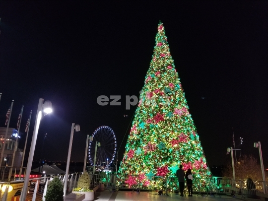 Gigantic Christmas tree displayed in Reston town center, VA, USA.