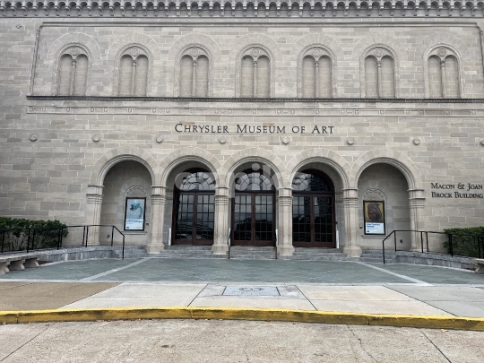 Norfolk, VA, USA - 05/17/2024: The main entrance of Chrysler Museum of Art. The museum was founded in 1933 as Norfolk Museum of Arts and Sciences. In 1971 it was named after automotive heir, Walter P. Chrysler Jr. (whose wife, Jean Outland Chrysler, was a native of Norfolk), who donated most of his extensive collection to the museum.