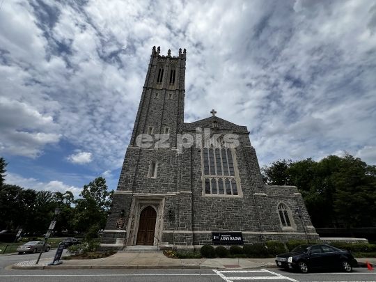 Norfolk, Virginia - 06-01-2024 Christ and St. Lukes Episcopal Church against a beautiful blue sky background. Low angle shot.