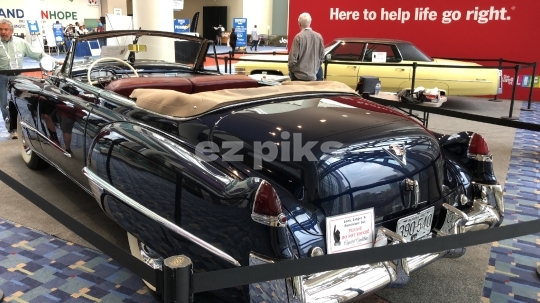Washington DC, USA - 04122019 Classic Cadillac Series 62 convertible, gleaming in the exhibit hall of Washington Auto Show of 2019.