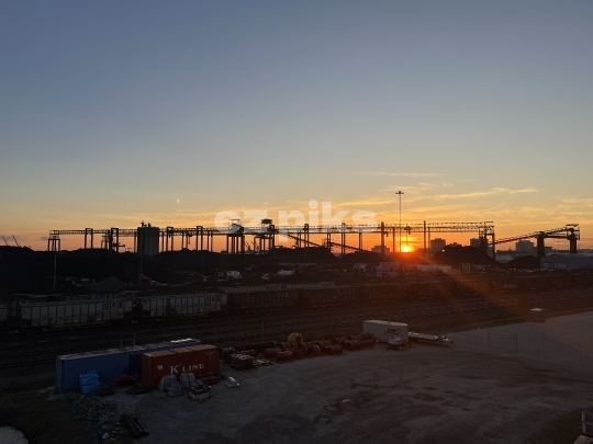 Newport News, VA, USA - 05-21-2024 Trains next to mountains of coal waiting to get loaded at a distribution terminal on James river in Virginia state, USA.