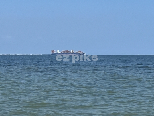 Norfolk, VA, USA - 10-04-203: A massive container ship is seen at the distance offshore Norfolk city in south eastern Virginia state, USA.