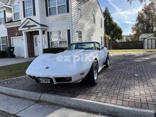 Virginia Beach, VA, USA - 11172024 A well-kept white Chevrolet Corvette from 1970s parked in front of a house in a residential neighborhood in Virginia Beach City in southeast Virginia, USA.