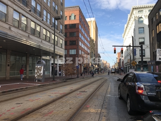 Baltimore, MD, USA - 02-21-2018 A general view of historic downtown in Baltimore, MD, USA.