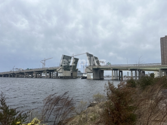 Norfolk, VA, USA - 02282024 Berkley drawbridge in open position to allow ships and vessels to pass through.