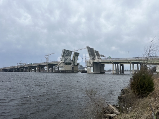 Norfolk, VA, USA - 02282024 Berkley drawbridge in open position to allow ships and vessels to pass through.