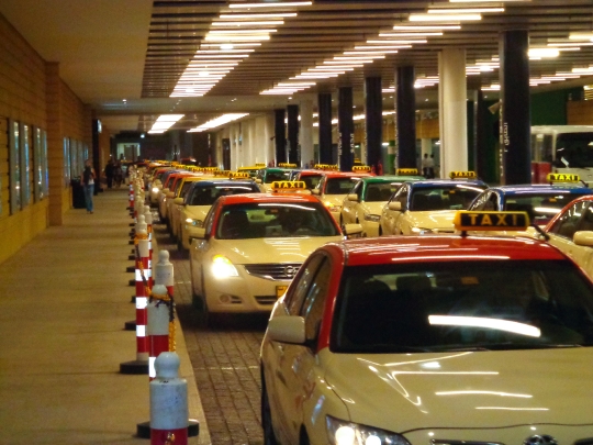 Dubai, UAE - 04-17-2012 A long line of Dubai taxi at the taxi stand in Emirates Mall in Dubai, UAE.