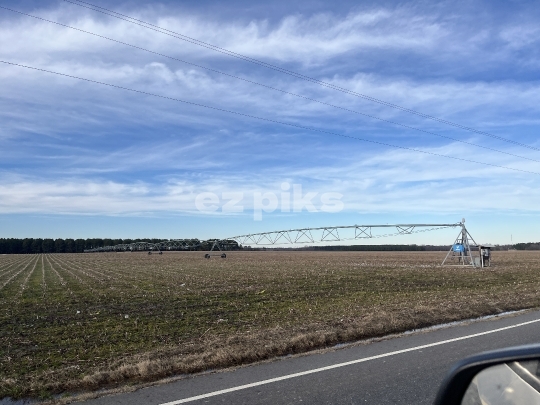 Portsmouth, VA, USA - 02142025 Irrigation pivot in a vast cotton field in rural Portsmouth in southeast Virginia, USA.