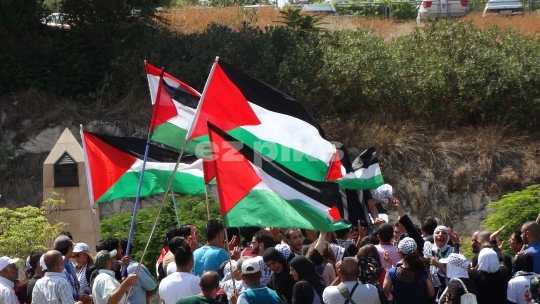 Beirut, Lebanon- 07-24-2014 Palestinian and Lebanese flags in a protest against IsraelGaza conflict also known as Operation Protective Edge and sometimes referred to as the 2014 Gaza war.