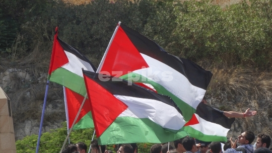 Beirut, Lebanon- 07-24-2014 Palestinian and Lebanese flags in a protest against IsraelGaza conflict also known as Operation Protective Edge and sometimes referred to as the 2014 Gaza war.