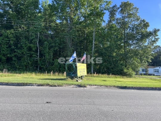 Moyock, NC, USA -05222024 American and Israeli flags setup on top of a sign of a rural store and market to show support to Israel during Gaza war.