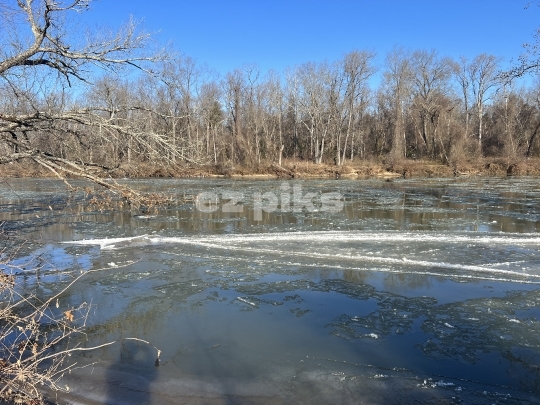 Fredericksburg, VA, USA - 01-22-2024 Ice covering the Rappahannock River as a sever cold front hit many parts of United States east coast.