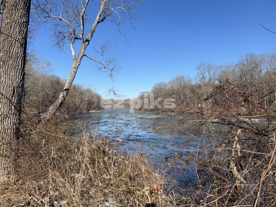 Fredericksburg, VA, USA - 01-22-2024 Ice covering the Rappahannock River as a sever cold front hit many parts of United States east coast.