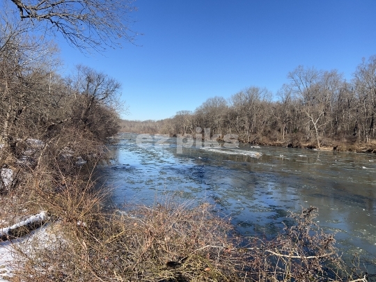 Fredericksburg, VA, USA - 01-22-2024 Ice covering the Rappahannock River as a sever cold front hit many parts of United States east coast.