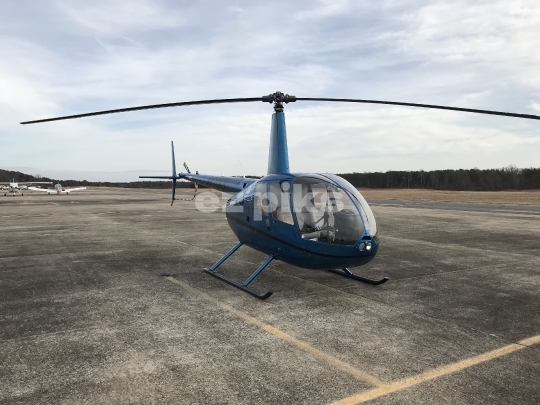 Annapolis, MD, USA A Robinson 44 light helicopter sitting on the tarmac.
