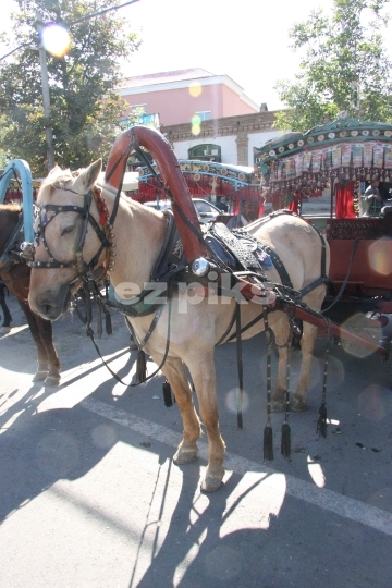 Xinjiang Province, China - 09/18/2011: Horse and a carriage waiting for tourists.