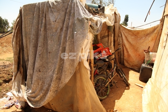 Qibb Ilyas, Lebanon - 07/30/2014: A bicycle in a tent inside a Syrian refugee camp in Qibb Ilyas (Qab Ilyas)