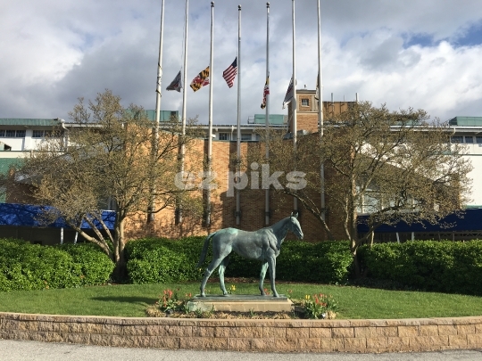 Laurel, Maryland, USA - 04/09/2016 : The front yard of Laurel park for horse racing.