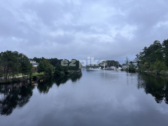 Chesapeake, VA, USA - 09-18-2024 A marina is seen in a view of Atlantic intracoastal waterway from Bridge Battle Bridge in downtown Chesapeake, VA, USA.