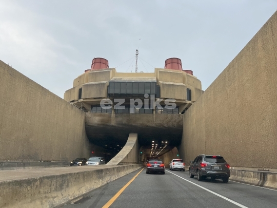 Newport News, VA, USA- 08-03-2023 The entrance to Monitor Merrimac Memorial Bridge Tunnel MMMT that connects the independent cities of Newport News on the Virginia Peninsula and Suffolk.