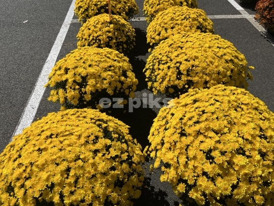 Vibrant yellow mums bloom, often associated with autumn and widely used for decorative purposes.