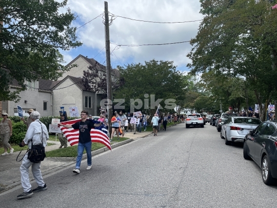 Norfolk, VA, USA - 06-14-2025 Demonstrators taking part in an anti-President Donald Trump no king demonstration in downtown Norfolk city in southeast Virginia, USA.
