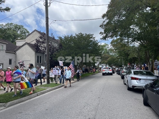 Norfolk, VA, USA - 06-14-2025 Demonstrators taking part in an anti-President Donald Trump no king demonstration in downtown Norfolk city in southeast Virginia, USA.