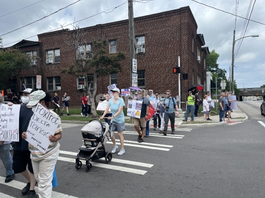 Norfolk, VA, USA - 06-14-2025 Demonstrators taking part in an anti-President Donald Trump no king demonstration in downtown Norfolk city in southeast Virginia, USA.