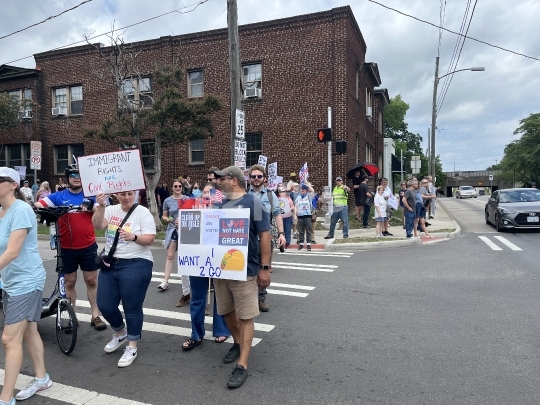 Norfolk, VA, USA - 06-14-2025 Demonstrators taking part in an anti-President Donald Trump no king demonstration in downtown Norfolk city in southeast Virginia, USA.